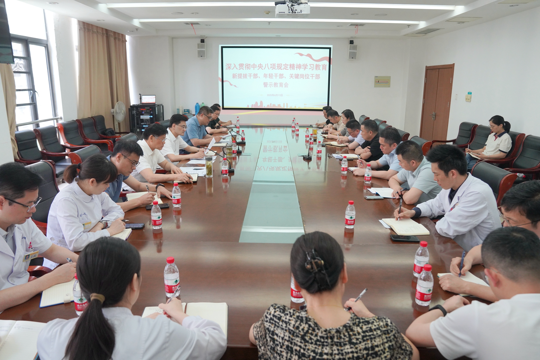 为推进深入贯彻中央八项规定精神学习教育走深走实,6月13日下午,合肥市二院召开警示教育会,院党委委员、副院长沈泌主持会议,院党委书记方辉,院党委委员、纪委书记张明,以及20余名新提拔干...